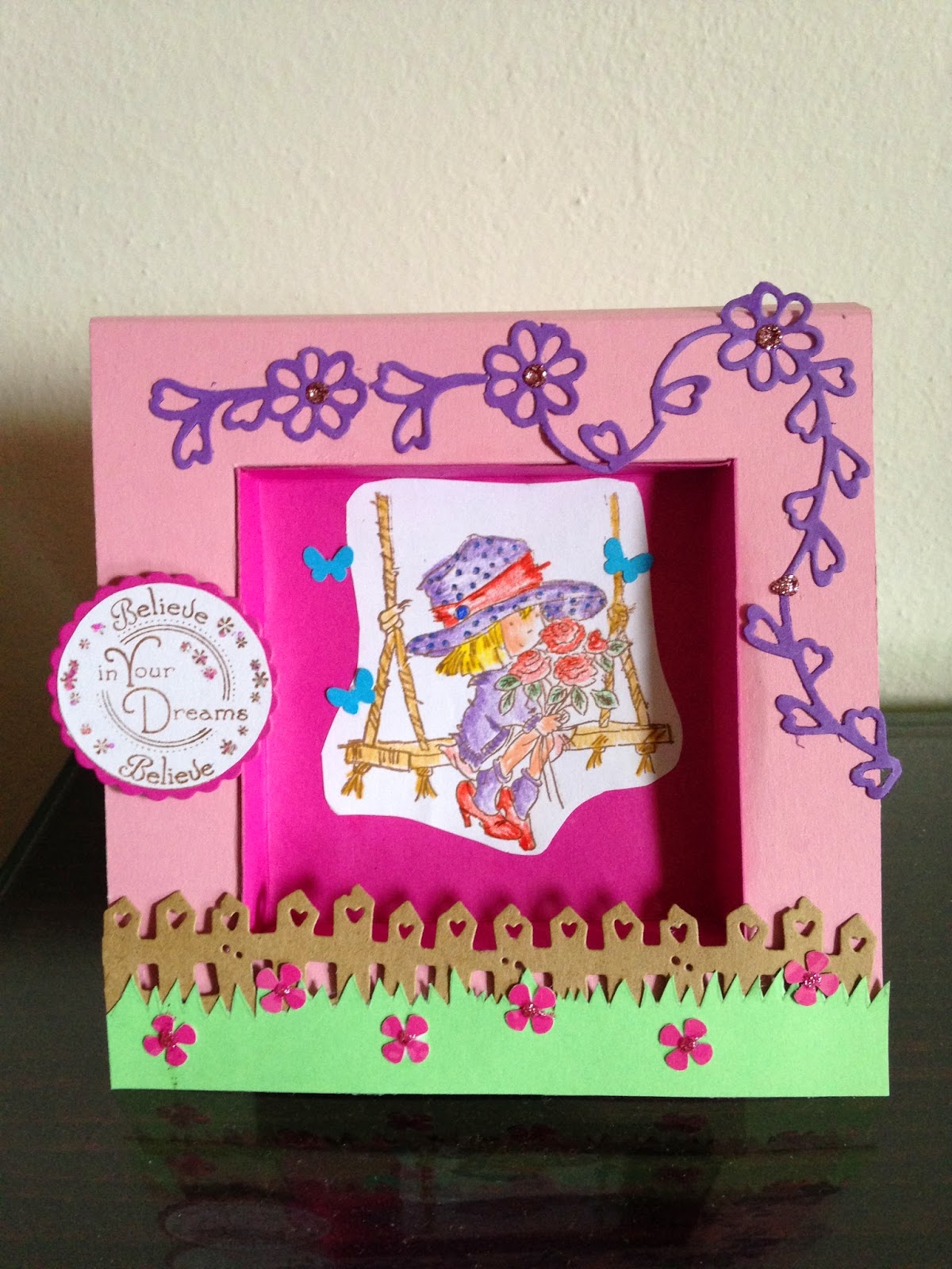 Ecco qua il mio lavoro, si tratta di una particolare struttura che si chiama "frame card". Io ho seguito il video tutorial della bravissima Sandra Ghidara per realizzarlo, vi lascio il link per chi fosse interessato.